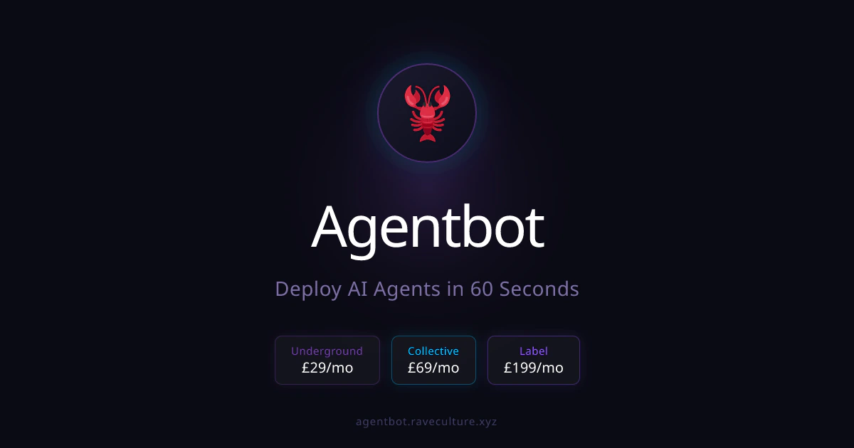 Deploy autonomous agents for your music operation. From demo drops to label infrastructure—hosted on Base, paid in USDC.Why Agentbot?